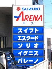 スズキ自動車の茨城県牛久市にあるカーディーラーです。先日、スズキスイフトの新車発表会にお邪魔して来ました。アンケートに答えたら3等賞が当たったとのことで洗車セットまで頂いてしまいました。まだ買い換えは先のことだと告げても、次はスズキでお願いしますとの満面の笑顔がとても印象的でした。試乗会で実際に新車に乗せてもらいましたが排気量の割にパワフルで音も静かで乗り心地も良かったですよ。次は真剣に考えますのでよろしくお願いします。